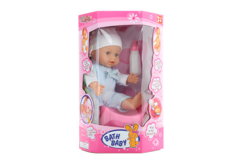 Miminko s pevným tělíčkem o velikosti cca 29 cm. Součástí je lahvička a nočník. Panenka po napití z lahvičky čurá do nočníku. Rozměry balení cca 20 x 15 x 32 cm. Věk 3+
