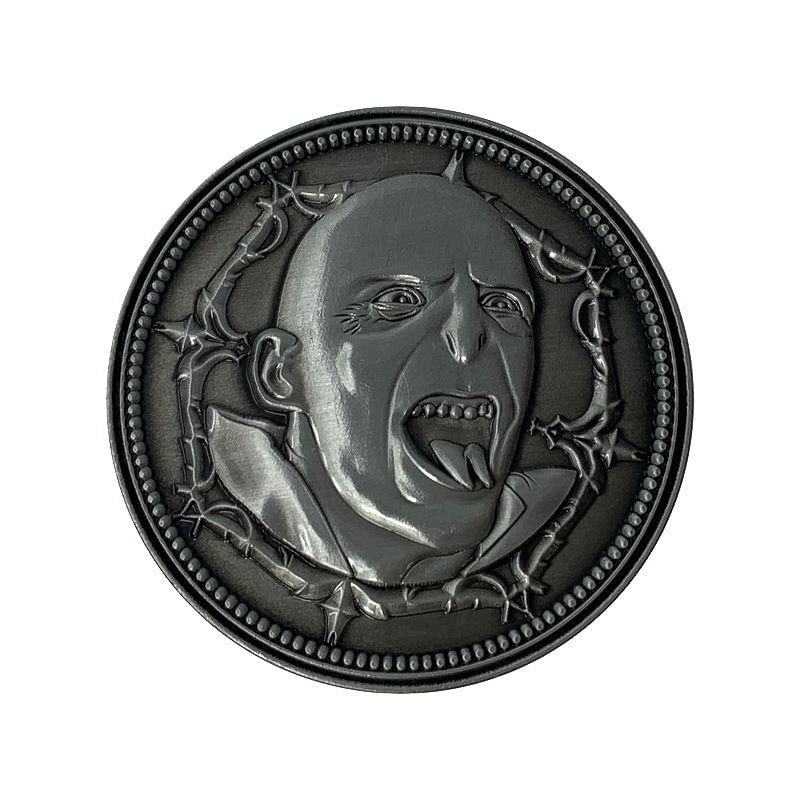 Děsivá tvář toho, jehož jméno se nesmí vyslovit, zdobí sběratelskou minci pro fanoušky Harry Pottera! Z opačné strany se nachází hadí symbol Zmijozelu. Jedná se o limitovanou edici 9 995 ks, každý jednotlivý kus je očíslovaný. Materiál: kov číst celé