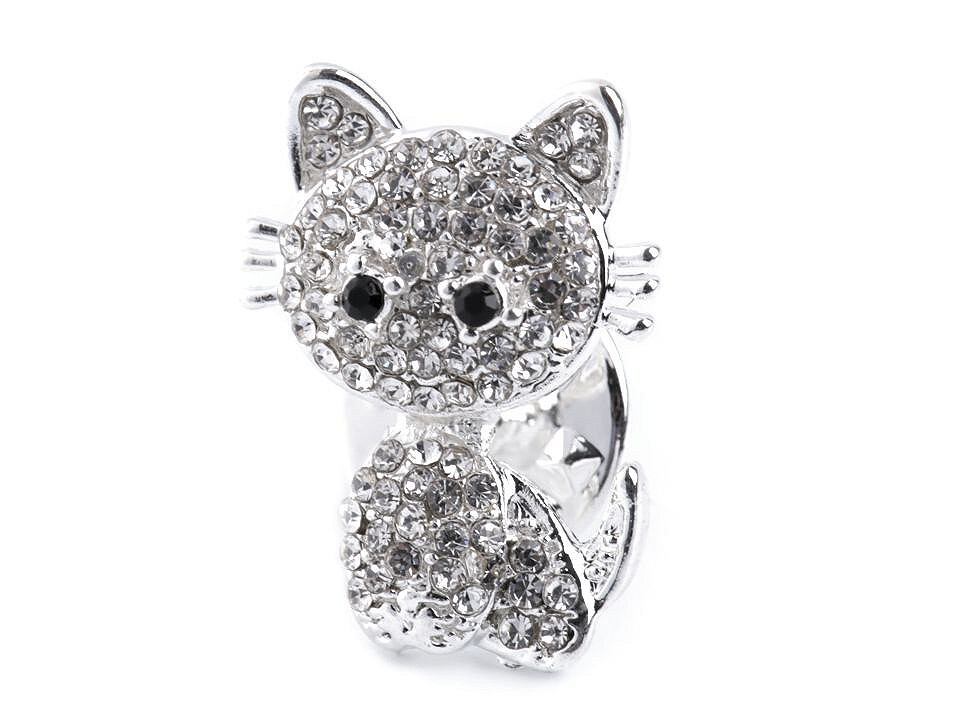 Brož / odznak s broušenými kamínky - 1 ks - 2 crystal kočka