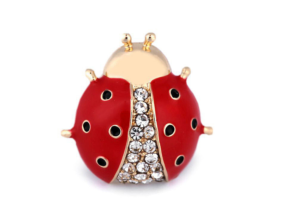Brož / odznak s broušenými kamínky beruška, krokodýl - 1 ks - 1 červená beruška