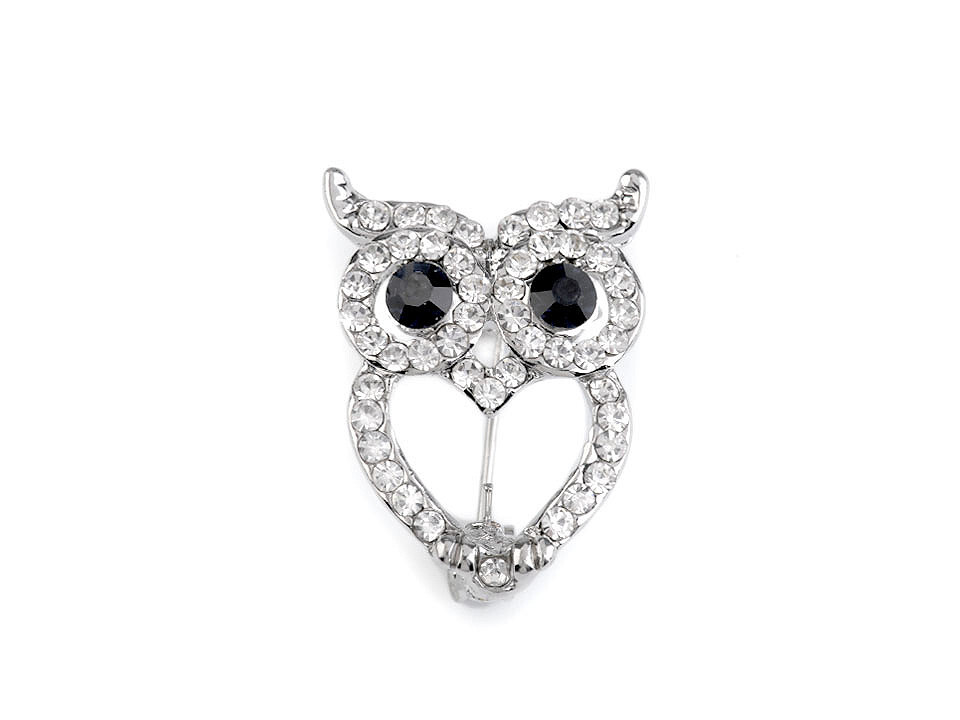 Brož s broušenými kamínky kočka, sova - 1 ks - 2 crystal sova