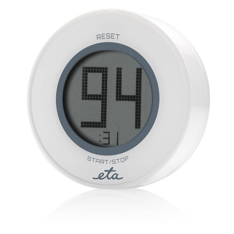 ETA Minutka 1832 90000Minutka ETA 1832 90000 Nespoléhejte se pouze na odhad a pořiďte si praktickou kuchyňskou minutku. Díky magnetu na zadní straně minutky ji můžete snadno uchytit například na lednici či troubu, čas tak budete mít stále před sebou a na očích. Minutka má velice dobře čitelný LCD displej a jednoduché ovládání. Čas si můžete nastavit přesně, na minuty i vteřiny, a to až do 99 minut a 59 vteřin. Minutka funguje na 1 ks baterie CR2032, která je součástí balení.