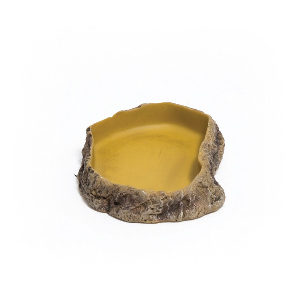 Miska na krmivo pro terarijní živočichy velikosti S. Nádoba je vyrobena z bezpečného polyresinu. Povrchová úprava je zpracována tak, aby miska svým vzhledem co nejvíce připomínala přírodní dekoraci, kámen, skalku, apod. Misky jsou tvarovány odlitím ve formách a jsou mimořádně odolné.• Rozměr: 10,5x15,5x3 cm• Na výběr je několik velikostí misek: XS, M a L