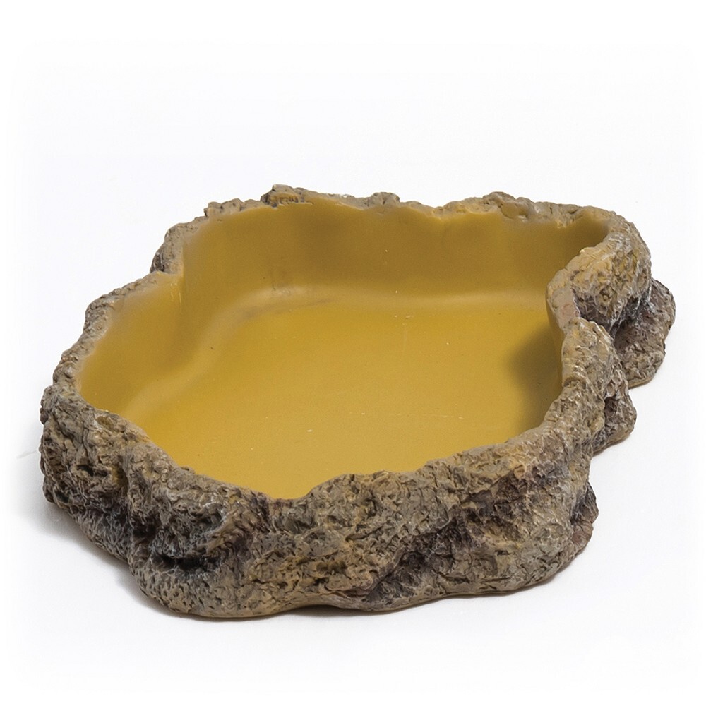 Miska na krmivo pro terarijní živočichy velikosti L. Nádoba je vyrobena z bezpečného polyresinu. Povrchová úprava je zpracována tak, aby miska svým vzhledem co nejvíce připomínala přírodní dekoraci, kámen, skalku, apod. Misky jsou tvarovány odlitím ve formách a jsou mimořádně odolné.• Rozměr: 17,5x23,5x5cm• Na výběr je několik velikostí misek: XS, S a M