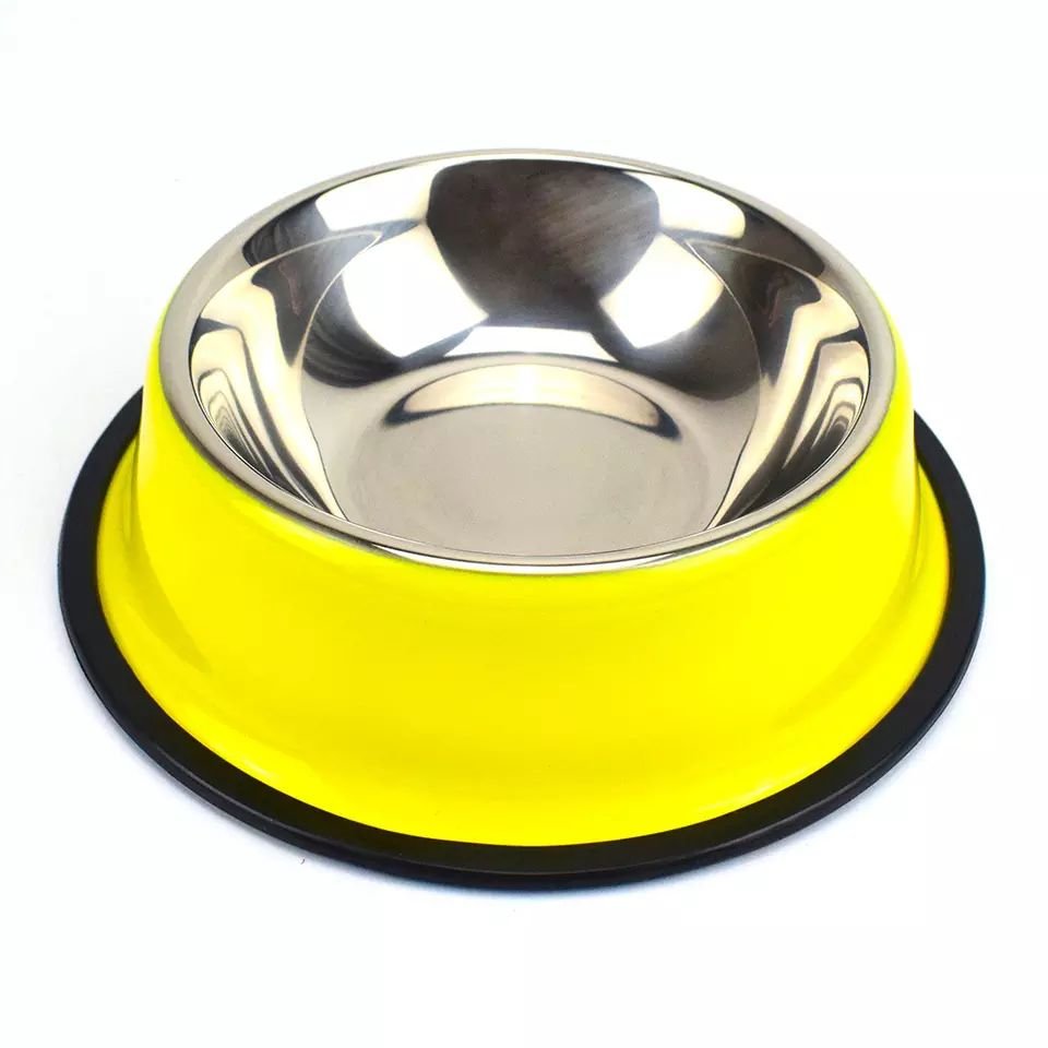 Barevná miska Surtep Animals vyrobená z nerezové oceli, doplněná ve spodní části o protiskluzový okraj.