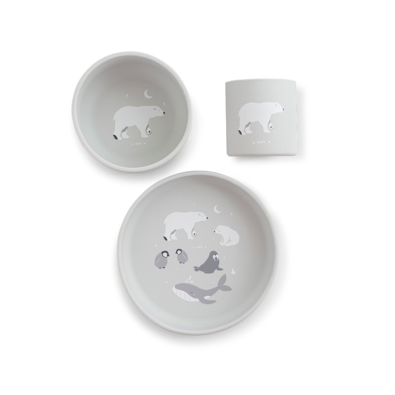 - celosilikonová jídelní sada - miska + talíř + hrníček