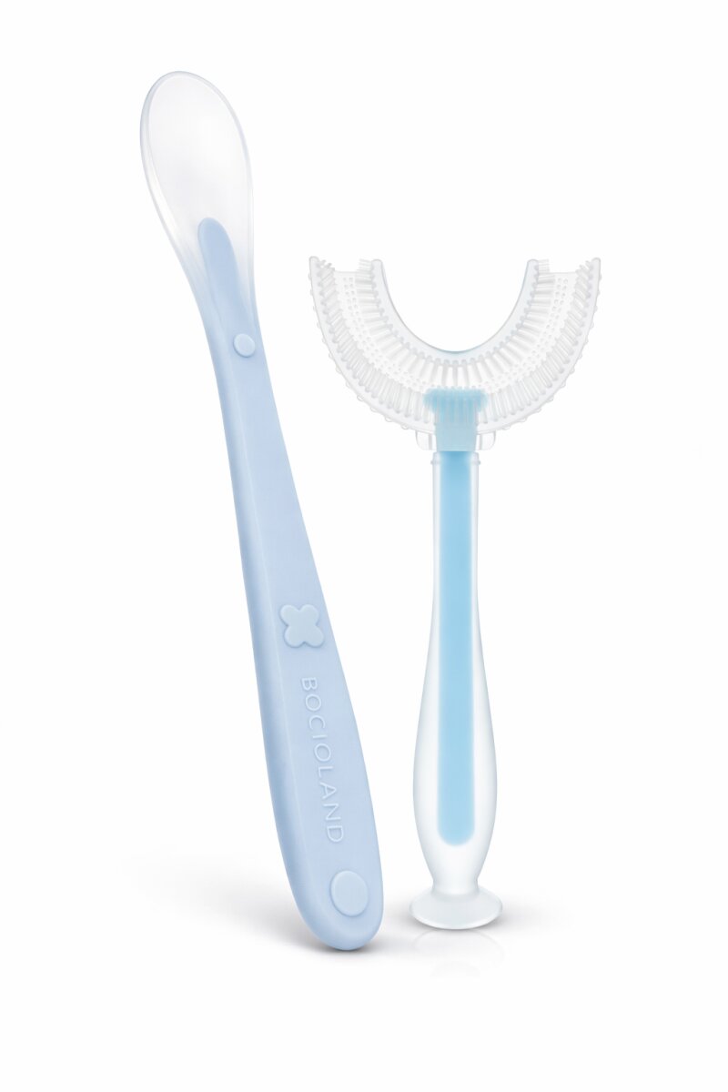 Sada: silikonová lžička + silikonový kartáček ve tvaru U pro děti - výhodná sada.