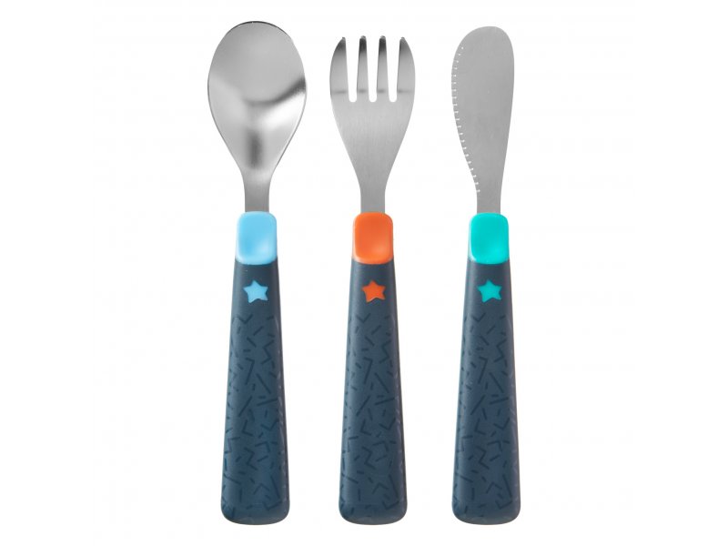 Příbor Tommee Tippee je určen pro snadný přechod od krmení lžičkou k používání příboru. Vidlička, nůž a lžička jsou lehké a díky plastovému držadlu snadno uchopitelné dětskýma rukama. Zaoblené tvary umožňují, aby se dítě učilo jíst s klasickým příborem bez rizika poranění úst.