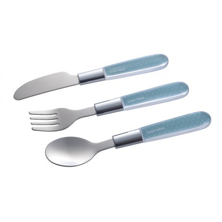 Speciálně tvarovaný dětský kovový příbor (nůž, vidlička, lžička) je určen dětem, které se učí samy jíst. Zaoblené tvary nedráždí cilivé dětské dásně a jsou pro dítě bezpečné. Příbor je vyroben z kvalitní nerezavějící oceli. Doporučujeme pro děti starší 18-ti měsíců. Návod k použití: Udržujte v čistotě. Před prvním a každým dalším použitím důkladně umyjte šetrným mycím přípravkem a opláchněte v horké vodě. Nepoužívejte v mikrovlné troubě. Nedoporučujeme umývat v myčce nádobí.Upozornění! Důležité pro zdraví a bezpečnost vašeho dítěte! Používejte pouze pod dohledem dospělé osoby. Před každým použitím výrobek důkladně zkontrolujte. Při prvních známkách poškození nebo opotřebení vyměňte výrobek za nový. Vždy zkontrolujte teplotu podávaného pokrmu. Upozornění! Výrobek není hračka. Uchovávejte mimo dosah dítěte.Kovový příbor odpovídá požadavkům:Nařízení Evropského parlamentu a rady 1935/2004/EC - obecné požadavky na materiály a předměty určené pro styk s potravinami,EN 14372 Výrobky pro péči o dítě - Příbory a nádobí pro krmení - Bezpečnostní požadavky a zkoušky.Pro bezpečí a zdraví vašeho dítěteVarování!Tento výrobek vždy používejte pod dohledem dospělé osoby.Před každým použitím výrobek zkontrolujte. Při prvních známkách poškození nebo opotřebení materiálu jej ihned vyhoďte.Vždy před krmením zkontrolujte teplotu pokrmu.
