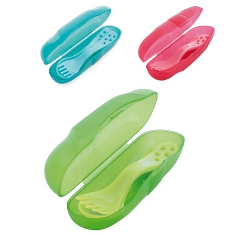 Plastový příbor (vidlička a lžička) v pouzdru je vyroben z bezpečných materiálů. Zaoblené tvary jsou přizpůsobeny citlivým dětským dásním. Pouzdro chrání příbor před zněčistěním.Návod k použití: Udržujte v čistotě. Před prvním a každým dalším použitím umyjte v teplé vodě šetrným mycím přípravkem, důkladně opláchněte teplou vodou. Nepoužívejte drsné čisticí prostředky, které mohou poškrábat povrch výrobku. Přelijte vařící vodou. Nevyvařujte. Můžete umývat v myčce nádobí (max. teplota 65°C). Upozornění! Důležité pro zdraví a bezpečnost vašeho dítěte!Používejte pouze pod dohledem dospělé osoby. Před každým použitím výrobek důkladně zkontrolujte. Při prvních známkách opotřebení nebo poškození výrobek dále nepoužívejte. Vždy zkontrolujte teplotu pokrmu podávaného dítěti. Upozornění! Výrobek není hračka. Uchovávejte mimo dosah dítěte.Plastový příbor odpovídá požadavkům:Nařízení Evropského parlamentu a rady 1935/2004/EC - obecné požadavky na materiály a předměty určené pro styk s potravinami,Nařízení Komise (EU) č. 10/2011 o materiálech a předmětech z plastů určených pro styk s potravinami,EN 14372 Výrobky pro péči o dítě - Příbory a nádobí pro krmení - Bezpečnostní požadavky a zkoušky.