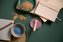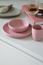 Set se skládá ze šálků, talířů a misek ve čtyřech různých barevných