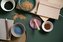 Série se skládá ze šálků, talířů a misek ve čtyřech různých barevných
