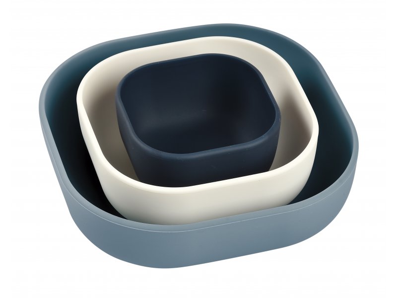 Sada tří misek z vysoce kvalitního silikonu ve třech velikostech nabízí možnost použití pro miminko od prvních příkrmů až po servírování oběda či svačinky dítěti v batolecím věku. Vysoké okraje a zaoblený tvar usnadňují nabírání příkrmu. Misky se snadno skladují složením do sebe.