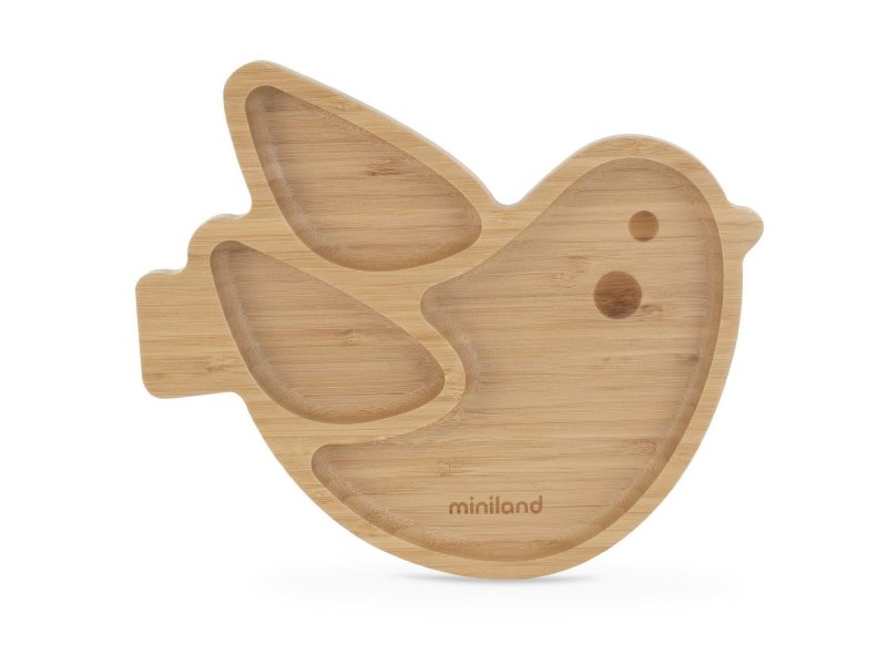 Dělený talíř v krásném provedení z bambusového dřeva ve tvaru ptáčka je vybaven odnímatelnou silikonou přísavkou, díky které neklouže po stole či jídelním pultu židličky. Talíř se třemi přihrádkami je ideální i pro BLW metodu, při které se strava nemixuje a dítě se krmí samo.