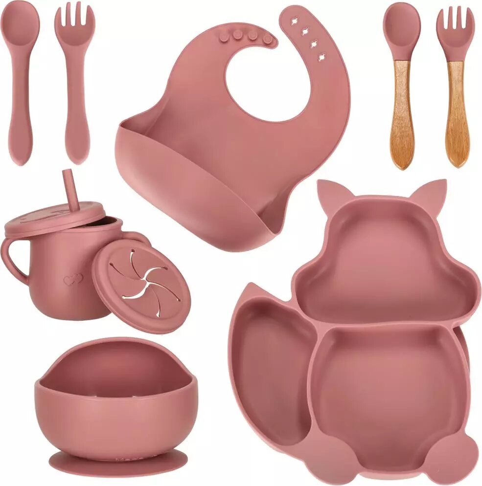 KIK Dětská jídelní sada silikonová tmavě růžová