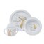 Tato krásná snídaňová sada obsahuje talíř, misku a šálek s víkem, vše vyrobené z odolného melaminového plastu. Každý prvek této sady obsahuje ilustrace a citáty z klasických knih. Firma Rainbow Designs byla založena v roce 1971 mladým podnikatelem Mikem Muttersem. V té době neexistovala značka, která by měla v názvu Rainbow (duha) a proto zvolil toto jméno. Jejich cílem je přinést dětem do života jejich oblíbené postavičky ve fyzické formě plyšáků. Chtějí být nejlepší z nejlepších a jejich hračky jsou vyráběny pod přísnými standardy, také rozvíjí smysly dětí. První licencí Rainbow Designs byli všem známí Disney, vyráběli pro ně módní šperky jako brože, smaltované knoflíky, odznaky, ale také zástěry, batohy a přesky opasků. Po této spolupráci se nabídky jen hrnuly a Rainbow mohli do svého portfólia přidat firmy jako Noddy, The Wombles, Flower Fairies, Mašinka Tomáš a klasického Medvíka Pú. Koncem 70. let vyrobili pod licencí odznaky pro Buckinghamský palác a královnu Alžbětu II. Během roku 1980 až 2010 dále spolupracovali například na medvědovi Paddingtonovi, různých postavičkách Beatrix Potter, Elmerovi a dalších postavičkách ze Sezame, otevři se. V jejich portfóliu najdete i prasátko Peppa, králíčka Petera a další známé postavy.
