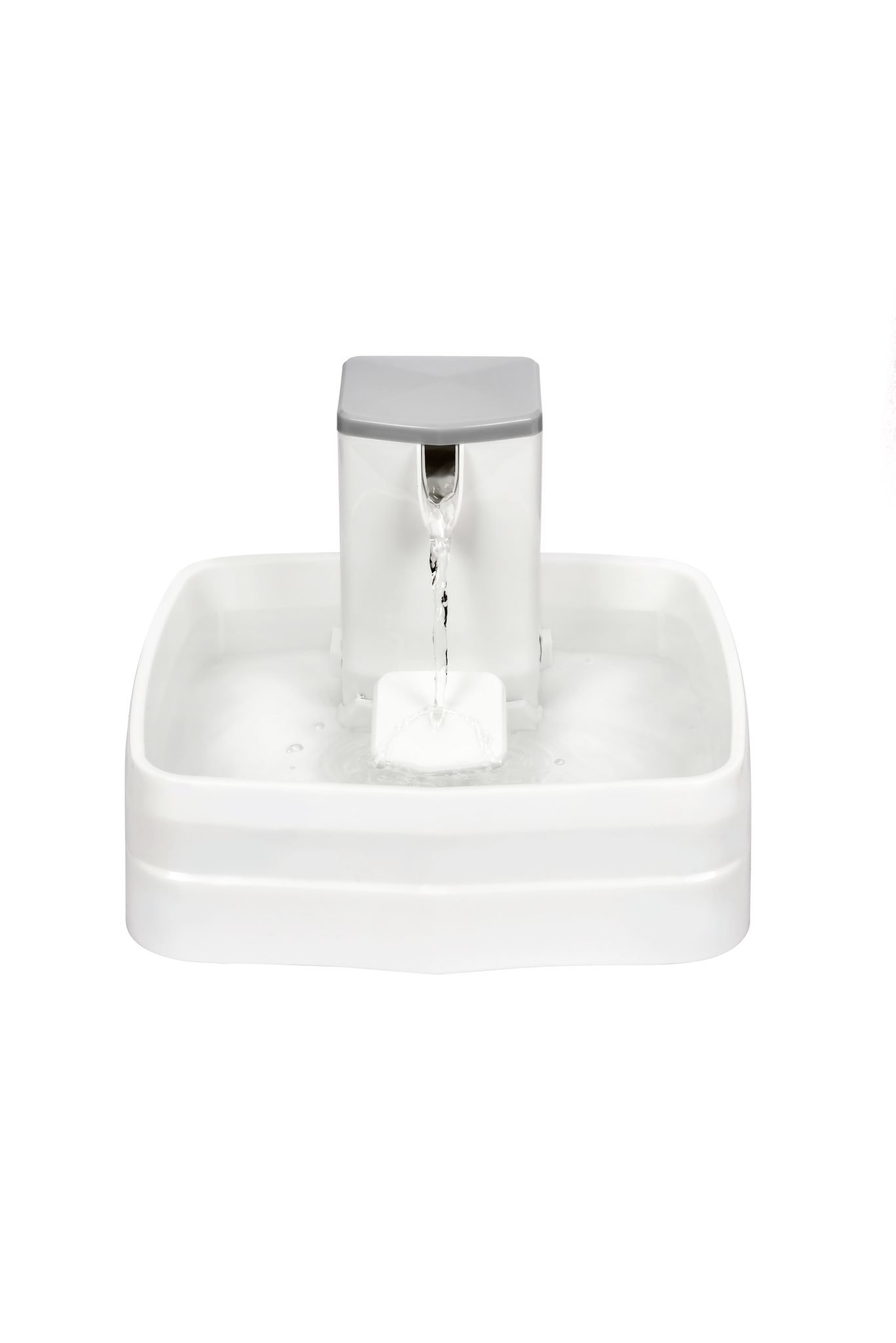 - Fontánka nepřetržitě cirkuluje vodu v misce, čímž vodu okysličuje