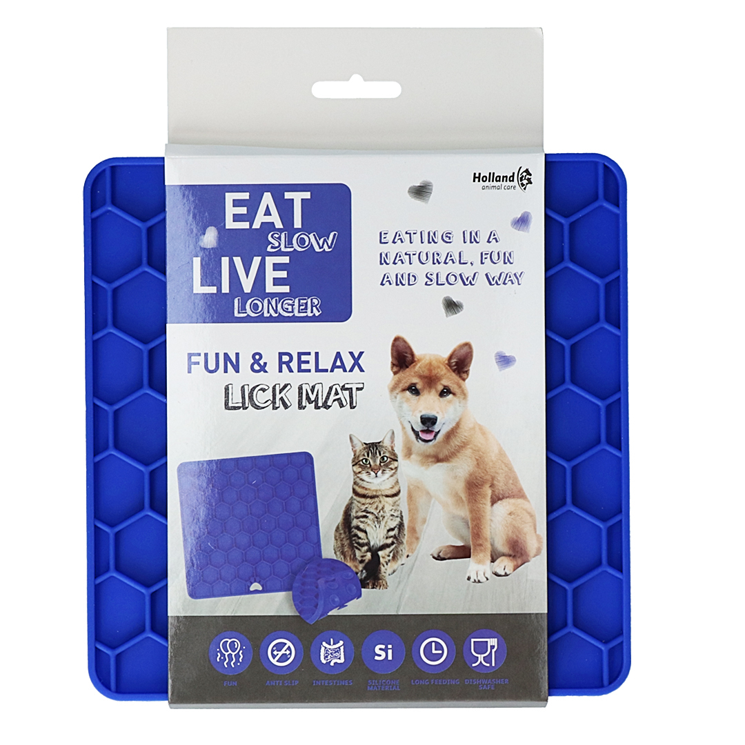 Lízací podložka Eat Slow Fun & Relax má mnoho silikonových přísavek, proto skvěle drží na hladkém povrchu, což oceníte při koupání, fénování, rozčesávání nebo jiném neoblíbeném ošetřování. Je skvělá jako zpomalovač jedení či pro zábavnou lízací hru, v létě jí můžete zamrazit i s dobrotami a dopřát tak pejskovi mlsné ochlazení. Podložka Eat Slow Fun & Relaxe je vyrobená ze 100% potravinářského silikonu a na spodní straně ma 49 efektivních přísavek, díky kterým bude na hladkém povchu držet jako přibitá!