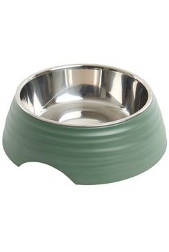 Tato miska se skládá z dvou částí. Vnitřní nerezová část lze vyjmout a lehce omýt.Vnější část je vyrobena z plastu melamin,který je zdravotně nezávadný. Na dně misky jsou gumové nožičky a miska proto neklouže po podlaze.