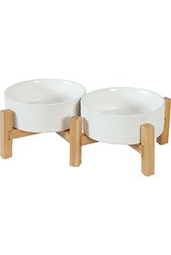 Keramické misky o objemu 2x 300 ml jsou pevně usazené na společné bambusové podnoži, která je navíc vybavena protiskluzovými podložkami. Díky tomu se misky nepohybují ani při hbitějším jídle či pití, což ocení nejen majitelé aktivních zvířat. Bílá barva misek podtrhuje jejich decentní a moderní design, který se hodí do každé domácnosti.