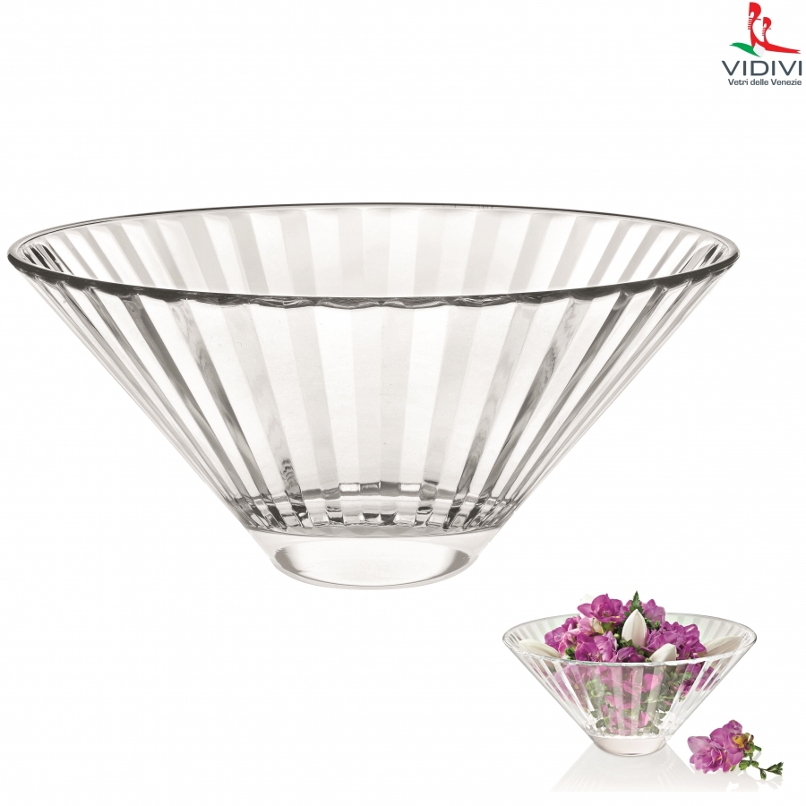 Skleněná mísa s jemnými záhyby po celé ploše vytvářejí lesk kterým se liší od běžného skla. Je vyrobena z kvalitního luxusního italského skla(sklo z Benátek) s vysokým stupněm transparentnosti, lesku a pevnosti. Propracované výrobky se budou vyjímat na každém stole. Vidivi výrobky vynikají jednoduchostí, čistotou tvarů, pevností a robustností. Rozměr - 26 x 20 cm, objem - 2,2 l, výška - 11,5 cm, hmotnost - 1,402 kg, vhodné do mikrovlnné trouby a myčky