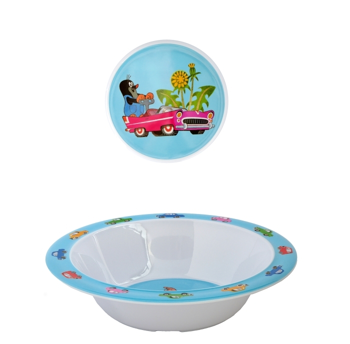 Dětská jídelní miska s motivem Krtečka je vhodná k servírování polévek a kaší. Materiál 100% melamin bez ftalátů. Možno mýt v myčce na nádobí. Tisk v mezivrstvě. Průměr 16 cm. Objem 350 ml. Nelze používat v mikrovlnné troubě! Testováno Zdravotním ústavem se sídlem v Ostravě.