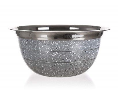 Mísa nerezová GRANITE Grey o průměru 23,5 cm v šedé barvě, tloušťka stěny 0,4 mm a výška mísy 11 cm. Mísa má široké využití v kuchyni, snadno se udržuje, je hygienická a odolná vůči nárazu. Vyrábí se v několika velikostech.