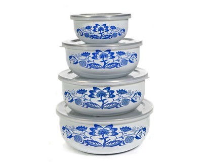 8dílná sada smaltovaných misek BELLY ONION s plastovými víčky o průměrů 18 / 16 / 14 / 10 cm. Misky jsou určeny pouze pro uchovávání potravin, nejsou určeny na vaření. číst celé