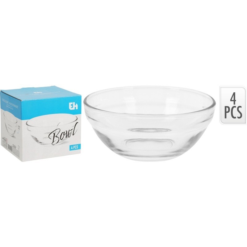 BOWL GLASS, SET OF 4PCS, DIA 12XH5CM, 275ML/9.30 OZ. WEIGHT 840 GRAM PER SET. EACH SET IN OUR DESIGN COLOURBOX WITH WINDOW, CARTON BETWEEN EACH BOWL FOR PROTECTION/ 130X130X120MM, Color box (CLB-C): 4 X pcs Bowl 120mm, Glass, 120X120X50MM / CFT 0,97,(32.000/40ft HQ) číst celé