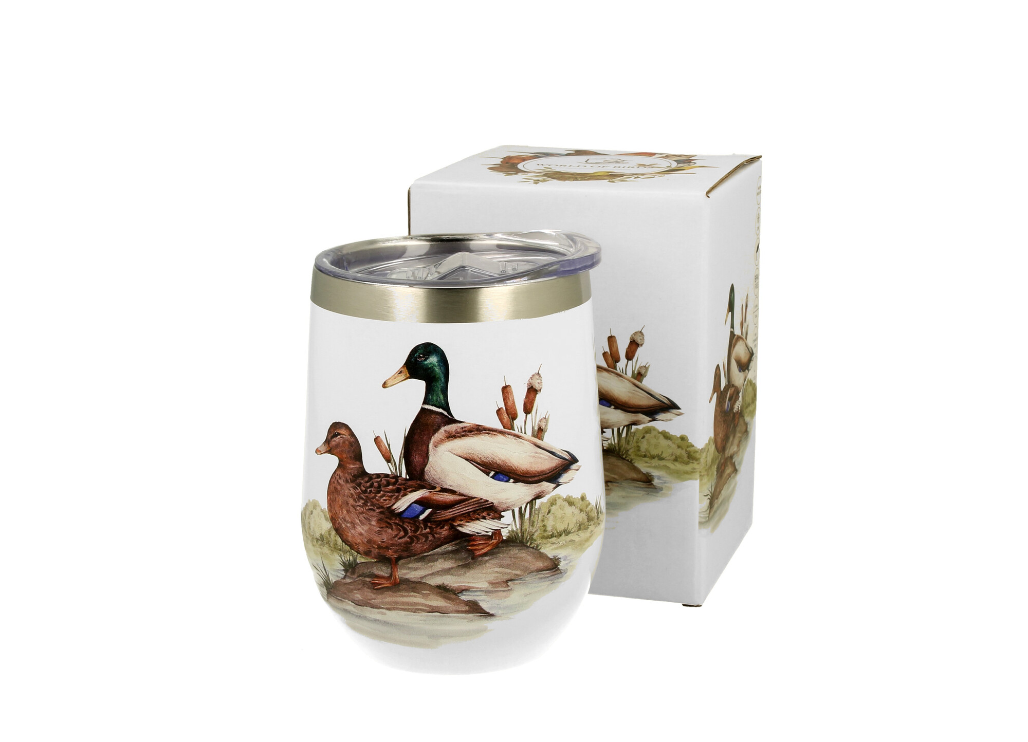 Kubek termiczny Ptasi Świat KACZKI wchodzący w skład serii Duo Animals, wykonany ze stali nierdzewnej 18/8, doskonały do zimnych i ciepłych napojów zabieranych do pracy, szkoły czy na podróż.