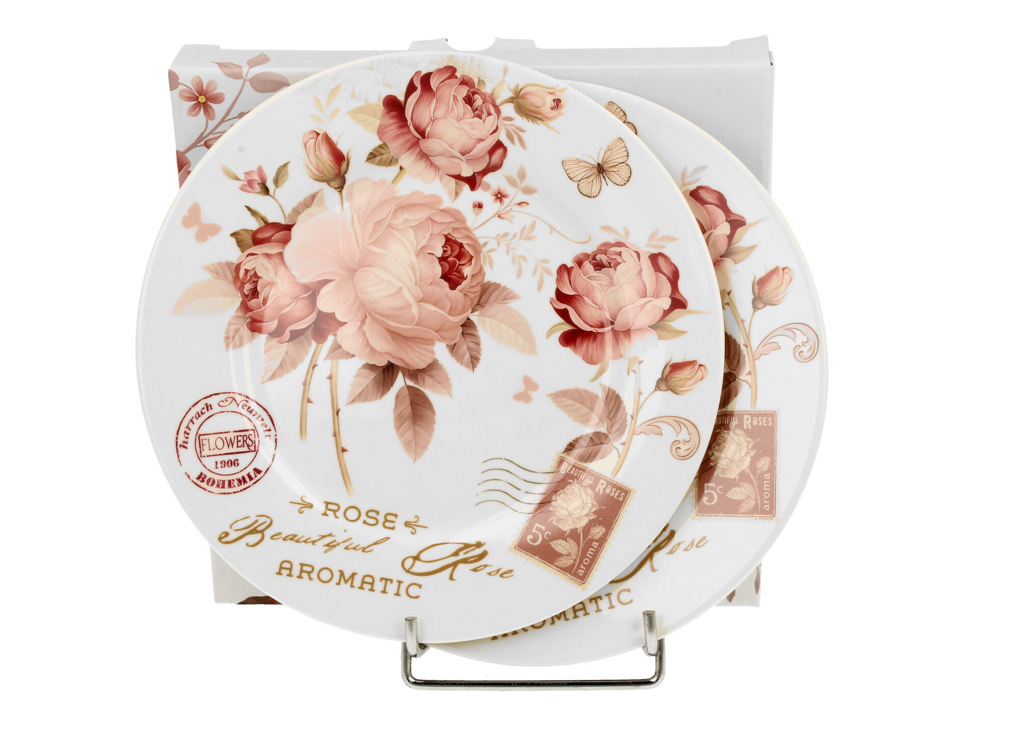 Komplet dwóch talerzy deserowych SECESJA wchodzący w skład serii Kwiaty Classic, wykonany z porcelany New Bone China, charakteryzującej się elegancką i naturalną kremowo - białą barwą z delikatnym połyskiem, a także wyjątkową wytrzymałością.