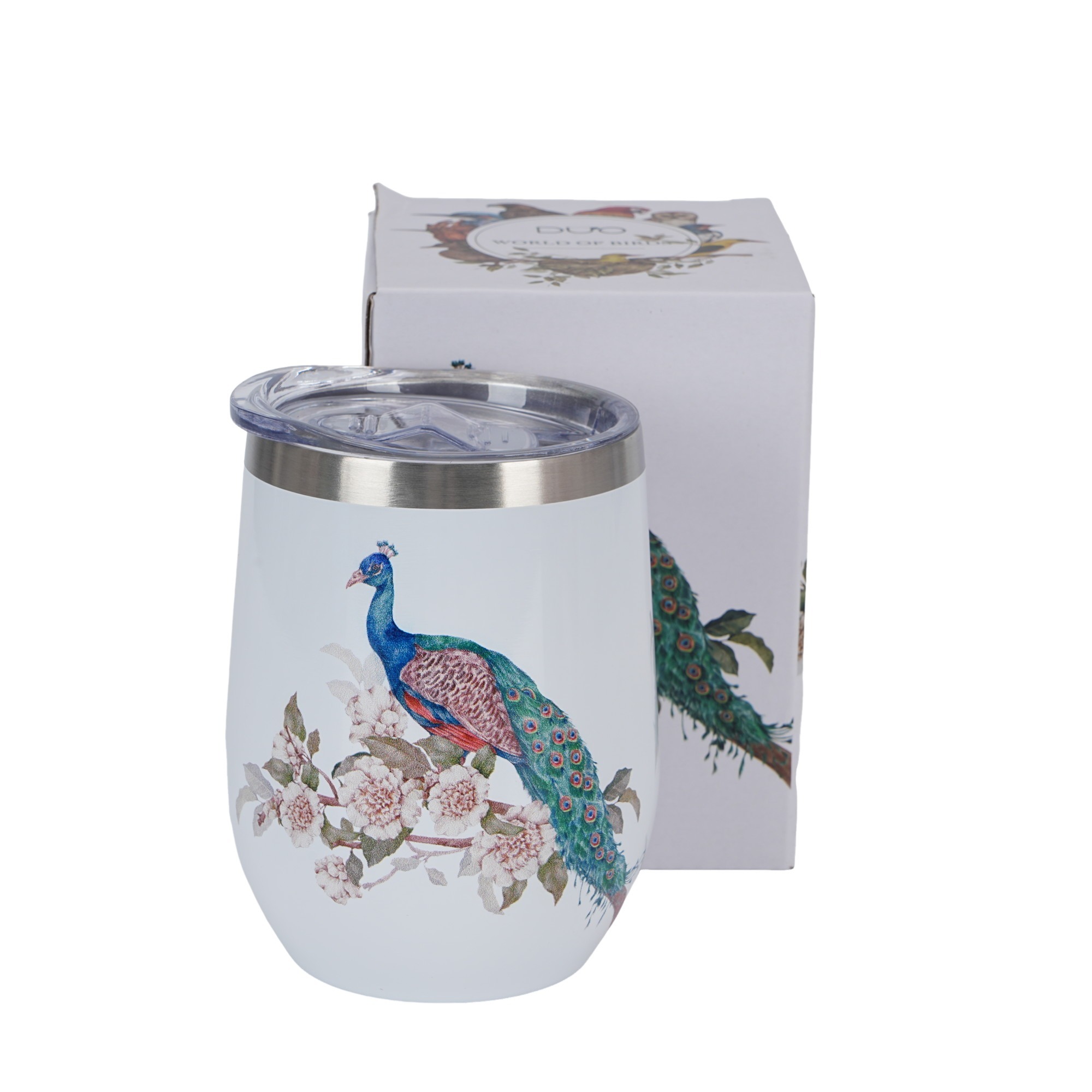 Butelka zapakowana w ozdobne pudełko z tym samym motywem to doskonały prezent dla bliskiej osoby, która również kocha przyrodę i docenia piękno ptasiego uroku.