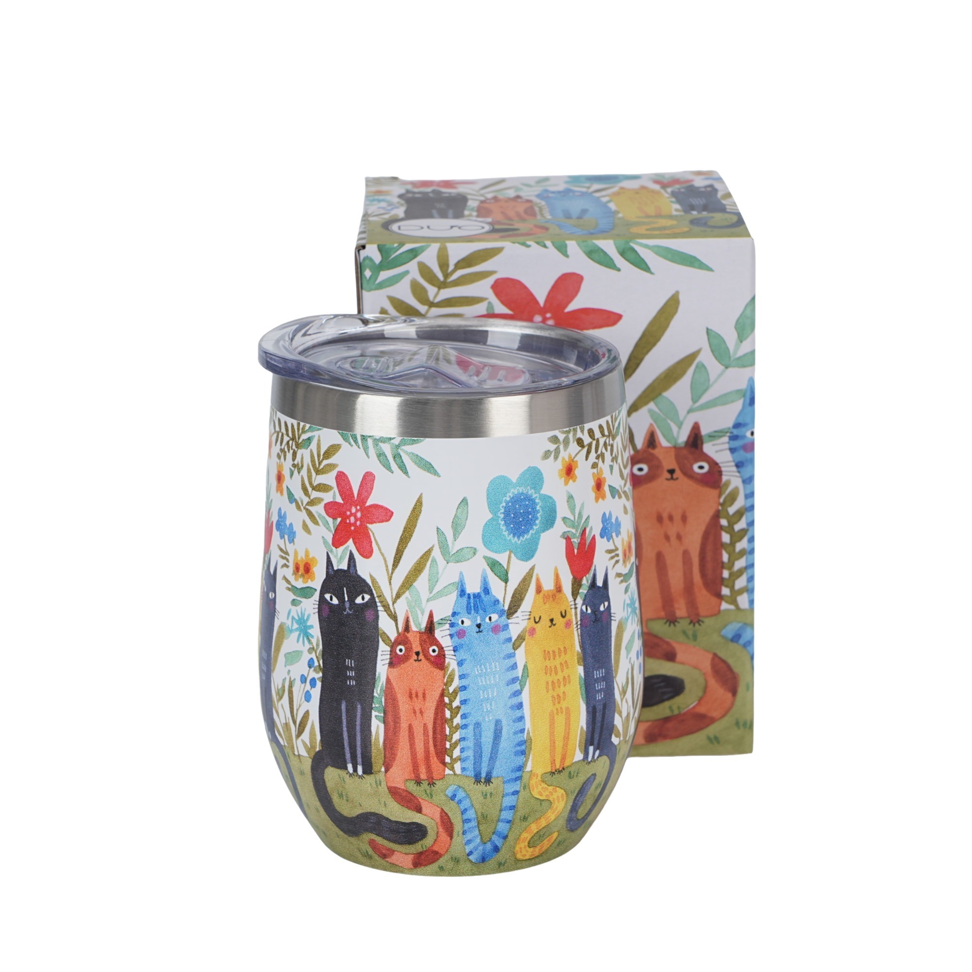 Kubek termiczny Koci Świat KOTY OGRODOWE wchodzący w skład serii Duo Animals, wykonany ze stali nierdzewnej 18/8, doskonały do zimnych i ciepłych napojów zabieranych do pracy, szkoły czy na podróż.