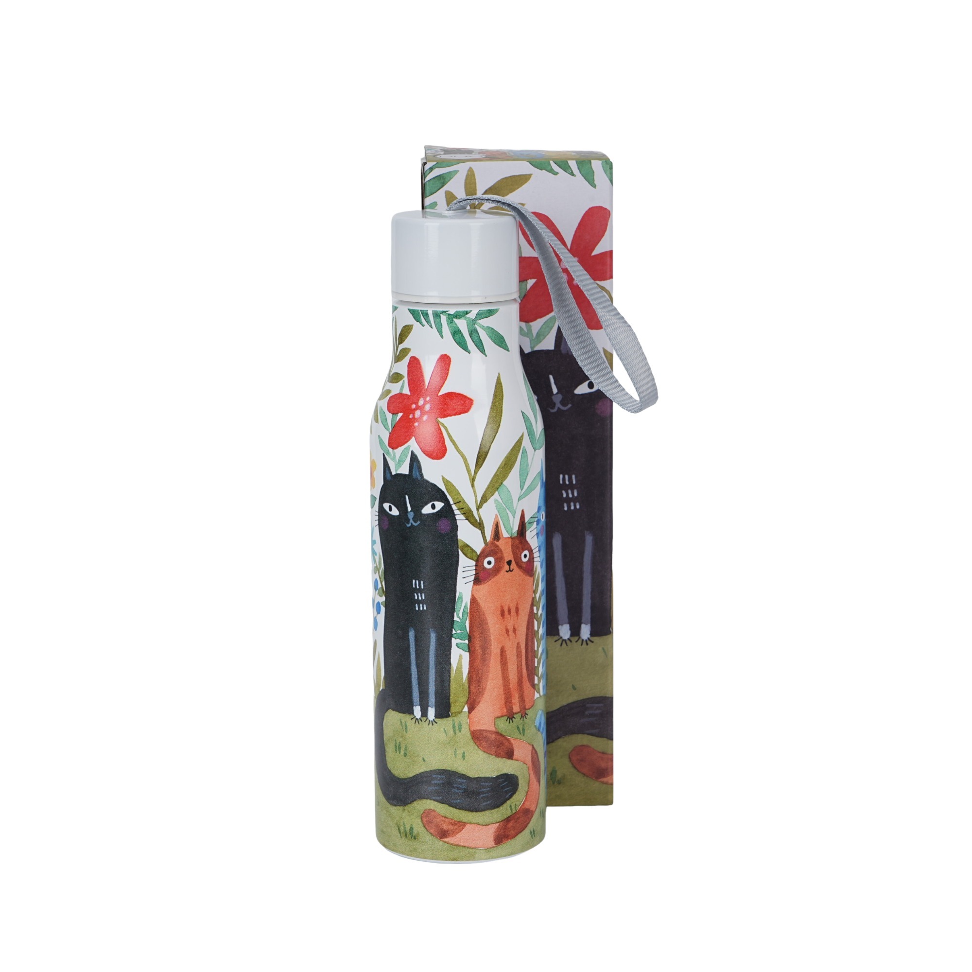 Butelka termiczna Koci Świat KOTY OGRODOWE wchodząca w skład serii Duo Animals, wykonana ze stali nierdzewnej 18/8, doskonała do zimnych i ciepłych napojów zabieranych do pracy, szkoły czy na podróż.