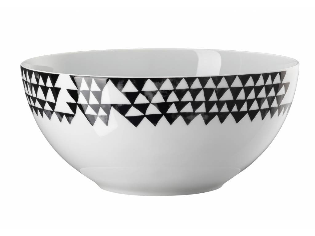 Univerzální přílohová nebo salátová mísa je vyrobena z bílého porcelánu, má celý horní okraj bohatě zdobený obrazci, tvořenými černými trojúhelníčky, představujícími stylizovaná semínka peruánského keře Annato. Obrázek, tvořený černými trojúhelníčky semínek, najdete i na jejím dně. Porcelánovou mísu o průměru 24 cm můžete využít nejen pro prezentaci ovocných nebo zeleninových nebo těstovinových salátů, ale také třeba při servírování příloh v podobě brambor, knedlíků, těstovin či rýže, různých kaší nebo vařené či grilované zeleniny. Kromě mís a misek tří různých průměrů (15 cm, 24 cm a 28 cm) je součástí kolekce se stejným dekorem Black Seeds i sada jídelních talířů, espresso šálek, velký hrnek s uchem a šálek na cappuccino s podšálky a dokonce i stolní svícen ve tvaru hrnku.Mladistvý design celé kolekce dává velký prostor vaší fantazii a je jen na vás, jakým způsobem si její jednotlivé součásti nakombinujete.