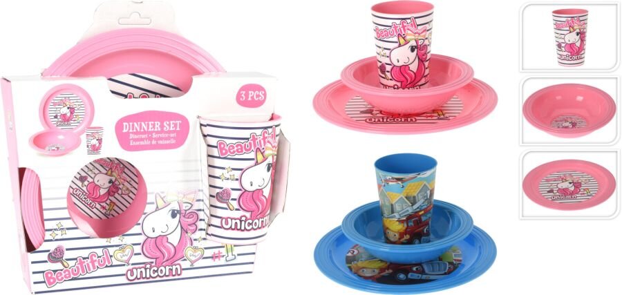 soupr. 3díl. JEDNOROŽEC, AUTO, děts.jídel, plast