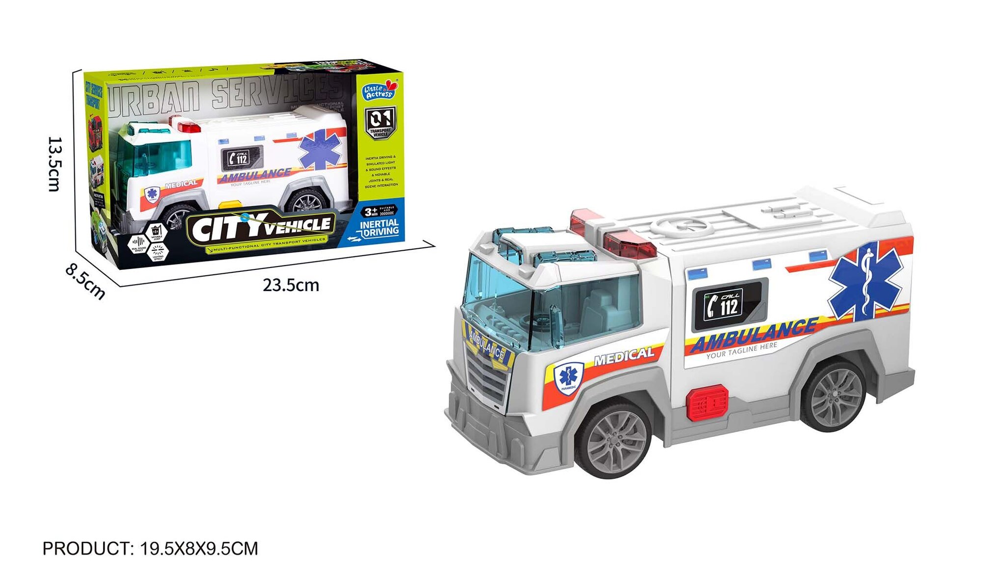 Auto záchranka na setrvačník s efekty. Vydává světelné a zvukové efekty. Baterie 3xAG13, součástí balení. číst celé
