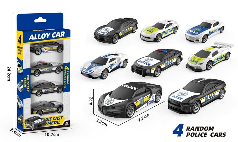 Auto policie na zpětné natažení. Rozměry 7,3x1,7x2,5 cm. Balení obsahuje 4 ks. 8 variant. číst celé