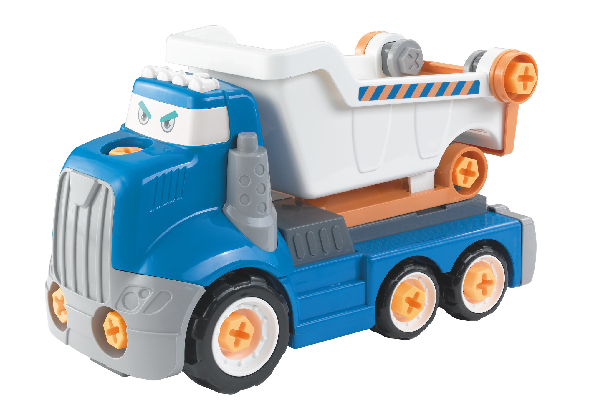 Auto sklápěč šroubovací s elektrickým šroubovákem. Obsah balení - auto s elektrickým pohonem (rozměry 28x14x17,5 cm), elektrický šroubovák, sada klíčů a šroubovák s násadami. Elektrickou jednotku šroubováku je možné vyjmout a vložit do auta. 2xAA baterie do šroubováku, nejsou součástí.