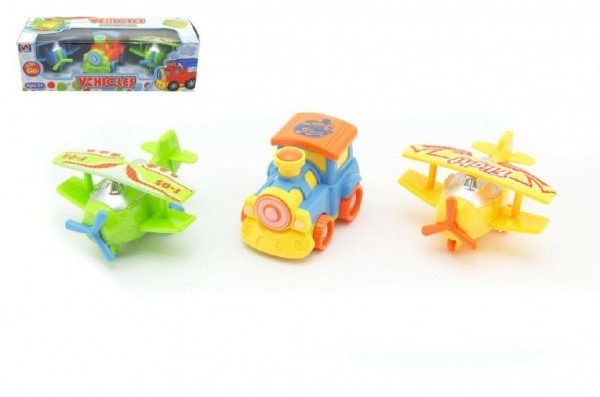 Dopravní prostředky 3ks auto, letadlo plast asst 3 barvy v krabičce