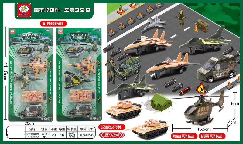 Vojenský set obsahuje vše, co potřebujete pro realistickou hru - praktický zpětně natahovací vrtulník o velikosti 16,5 cm, dva stíhací letouny, tank a auto. Každý kousek je navržen tak, aby podporoval tvůrčí zábavu a rozvíjel představivost. Zpětné natažení vrtulníku umožňuje jednoduché a zábavné ovládání, které zabaví celé hodiny.