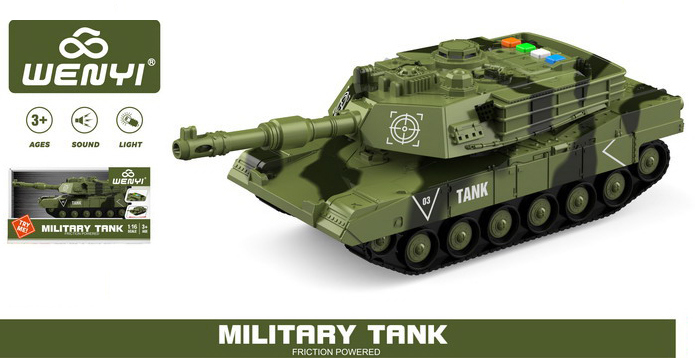Tank s efekty. Velikost 25 cm. Na setrvačník. Světelné a zvukové efekty tlačítky na tanku. 3xAG13 baterie součástí. číst celé
