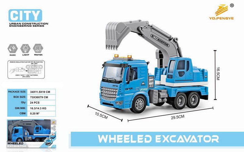 Jeřáb s efekty. Rozměry 30x10,5x16,5 cm. Na setrvačník. Světelné a zvukové efekty. 3xAG13 baterie součástí. číst celé