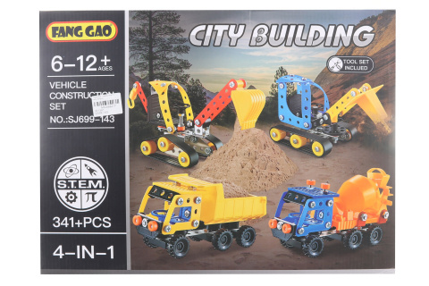 Šroubovací stavebnice obsahuje 4 modely stavebních strojů a šroubovák s klíčem. Rozměr balení cca 43 x 32 x 6 cm. Věk 6+