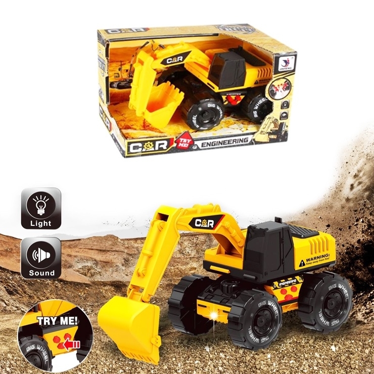Zahraj se na malého bagristu. Po vytažení pojistky a stlačení tlačítek na boku auta, uslyšíte zvuk startování, couvání a troubení. Přitom na autě bliká světélko. Manuální otáčení základny a zvedání lžíce. Hračka vyžaduje 3ks knoflíkových baterií typu AG13, které jsou součástí balení. Nevhodné pro děti do 3 let.