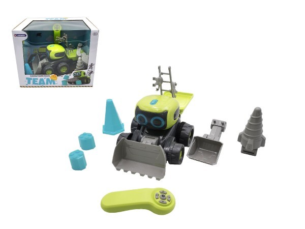 Auto/Stavební stroj RC plast 15x20cm na baterie s doplňky v krabici 32x25,5x23,5cm