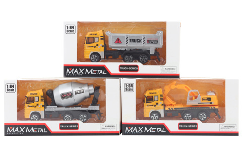 Kovové stavební auto. Rozměry cca 11 x 5,5 x 3,5 cm. Rozměry balení cca 17 x 8,5 x 4 cm. Věk 3+ číst celé