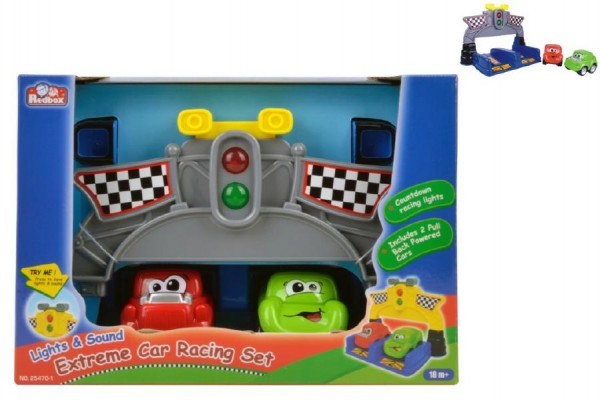 Závodní sada autíčka 2ks 9cm plast na baterie se zvukem se světlem v krabici