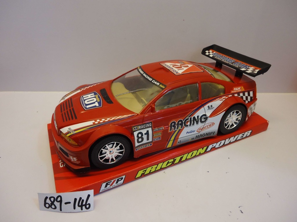 Závodní auto v nabídce v červené a stříbné barvě. číst celé