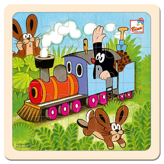 Krásné puzzle s motivem Krtečka, která jede mašinkou a pozorují ho zajíčkové. Opravdu moc krásný motiv, který bude děti bavit skládat. Na puzzle je super to, že se skládají do dřevěného rámečku, děti tedy vědí, jak bude obrázek orientovaný a puzzle jim neujíždějí, na první pokusy o skládání je to mnohem lepší, než skládat na volno. Puzzle mají třicet dílků, což už je docela dost, ale tříleté dítě to zvládne. Doporučuji.